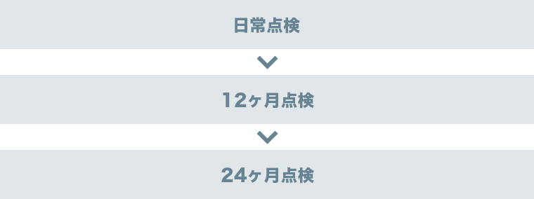 BUBU⾞検では法定24ヶ⽉点検を実施いたします。(エンジン・トランスミッション・⾜廻りなど主要箇所の点検)